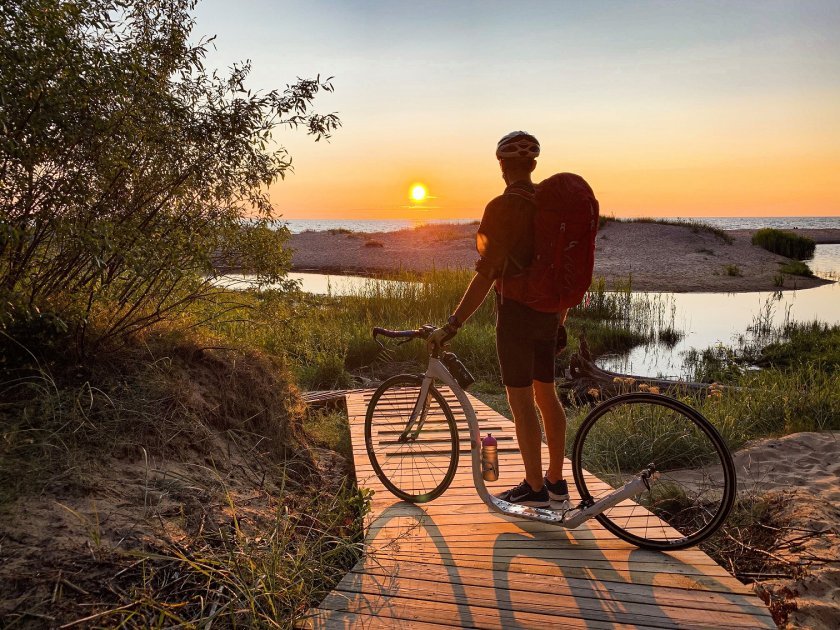 We continued along the coast to the next country. On the evening of the fifteenth day of our trip, we crossed the Estonian border. That day, after crossing the border, we continued our journey through Estonia for about an hour and then ended up in the evening in a small Estonian village in a wooden stall, where, judging by its decorations, fish was usually sold. The plan for the next day was to ride a few dozen kilometers to Tallinn, from where we were to take a ferry to Helsinki. But as it happens, plans change during a trip, and when we found out the next evening, after almost 130 kilometers, that it was going to rain the next morning, we decided to ride a few more kilometers so that we wouldn’t have to ride in the rain for so long in the morning. We rode on great asphalt, and because we wanted to get as far as possible, we did it in the style of a team time trial, with my brother riding his bike in front of me and me on my scooter drafting behind him. In the end, we covered 44 kilometers at an average speed of 25 km/h (with about 8 kg of backpack on my back), which I consider to be quite good speed training on such a trip. And so we finally went to sleep after 171 kilometers under our belts, just a few kilometers from Tallinn. We crossed almost the entire length of Estonia in one day. The next day in Tallinn, we boarded a ferry and sailed about 60 kilometers to Helsinki. To Finland – the first Scandinavian country we passed through on our journey.