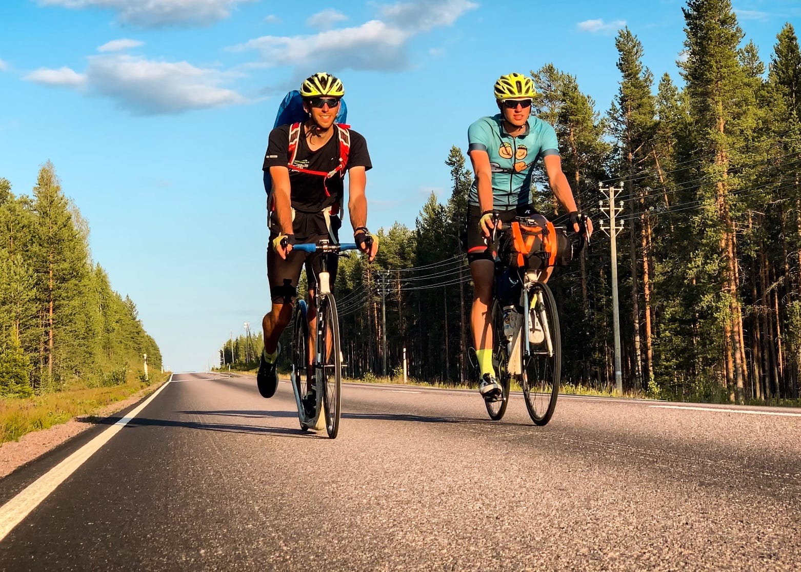 We also have a funny story from this part of the trip. In the evening, we were supposed to pass by a campsite, so we agreed that if the price for a tent was reasonably low, we would spend one night at the campsite. We drove into the campsite with the intention of first checking out the situation, when suddenly an old man came up to us from one of the caravans. The campsite manager, we thought. After a while, it turned out that the old man was not the campsite manager and that he only spoke Finnish. Moreover, he was very talkative and didn’t care at all that we didn’t understand him. So we just smiled and nodded. At one point, we somehow understood that he was probably asking us where we were from and where we were going, so we showed him on the map of Europe on our jerseys that we were going to the northernmost point of Europe. We hadn’t understood a single word he said the whole time, but then he suddenly said in a solemn, mysterious voice: “Nooorrrrrdkapp.” Well, we didn’t end up sleeping at the campsite because the price for a tent was quite high, but then we thought that maybe he was some kind of shaman and that his “Nooorrrrrdkapp” ensured that we would indeed reach the north of Europe.