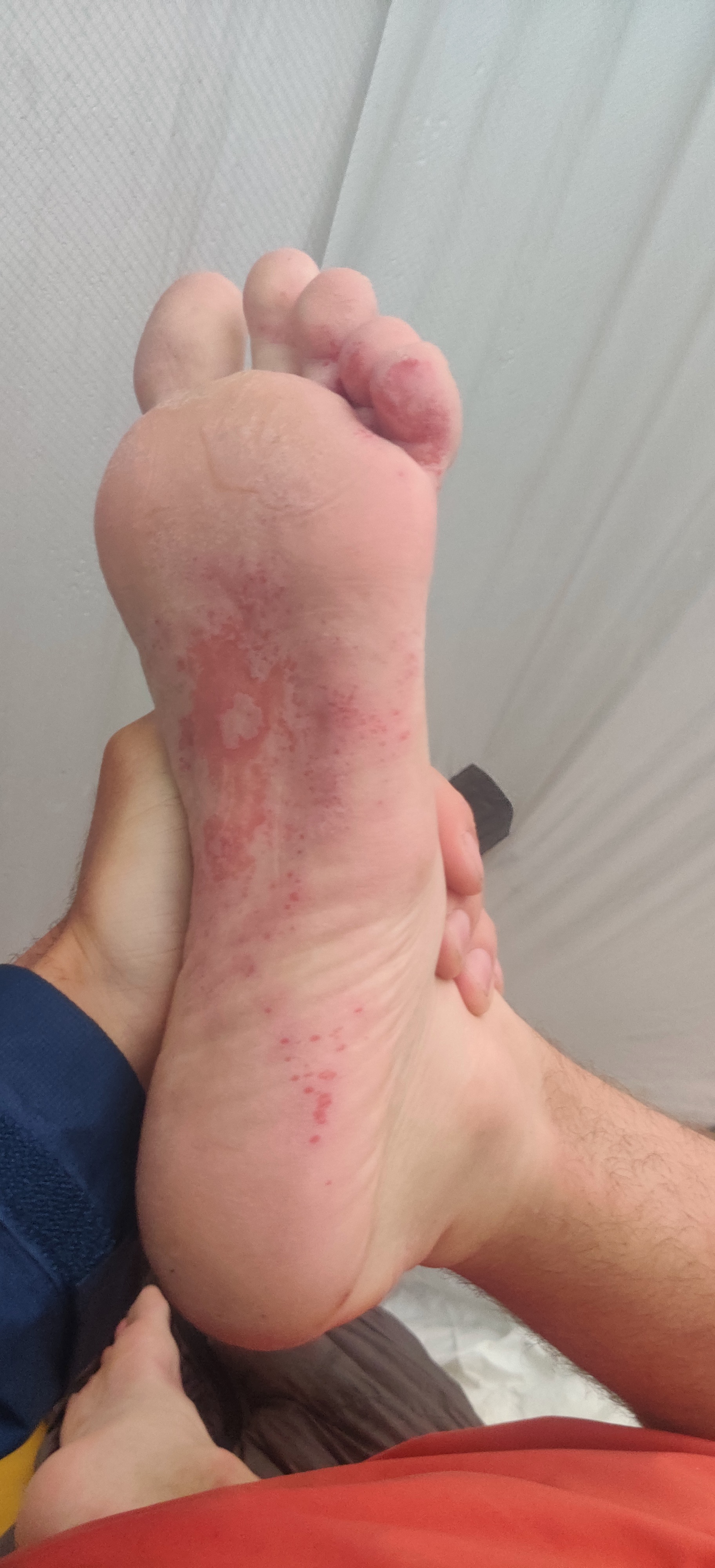 My feet were completely soaked, the skin started peeling, and I developed a problem I later identified as trench foot (if you know, you know; if you don’t know, look it up, but not while eating). It didn’t look too terrible, but more importantly, it became genuinely painful. Every step hurt, and just to keep things interesting, the rain started coming down properly.