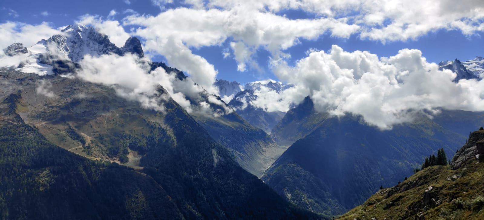 Luckily, the weather cleared by the time I reached La Tour, and I had just one final climb left. I wasn’t in a rush. The sun was out, the views were spectacular, and I had all the time I needed. Mont Blanc, Aiguille Verte, Aiguille du Midi, Grandes Jorasses… it felt like a greatest-hits album of the Alps spread out in front of me. Near La Flégère, I sat down by the path and just stared at the mountains for almost half an hour enjoying the moment.
