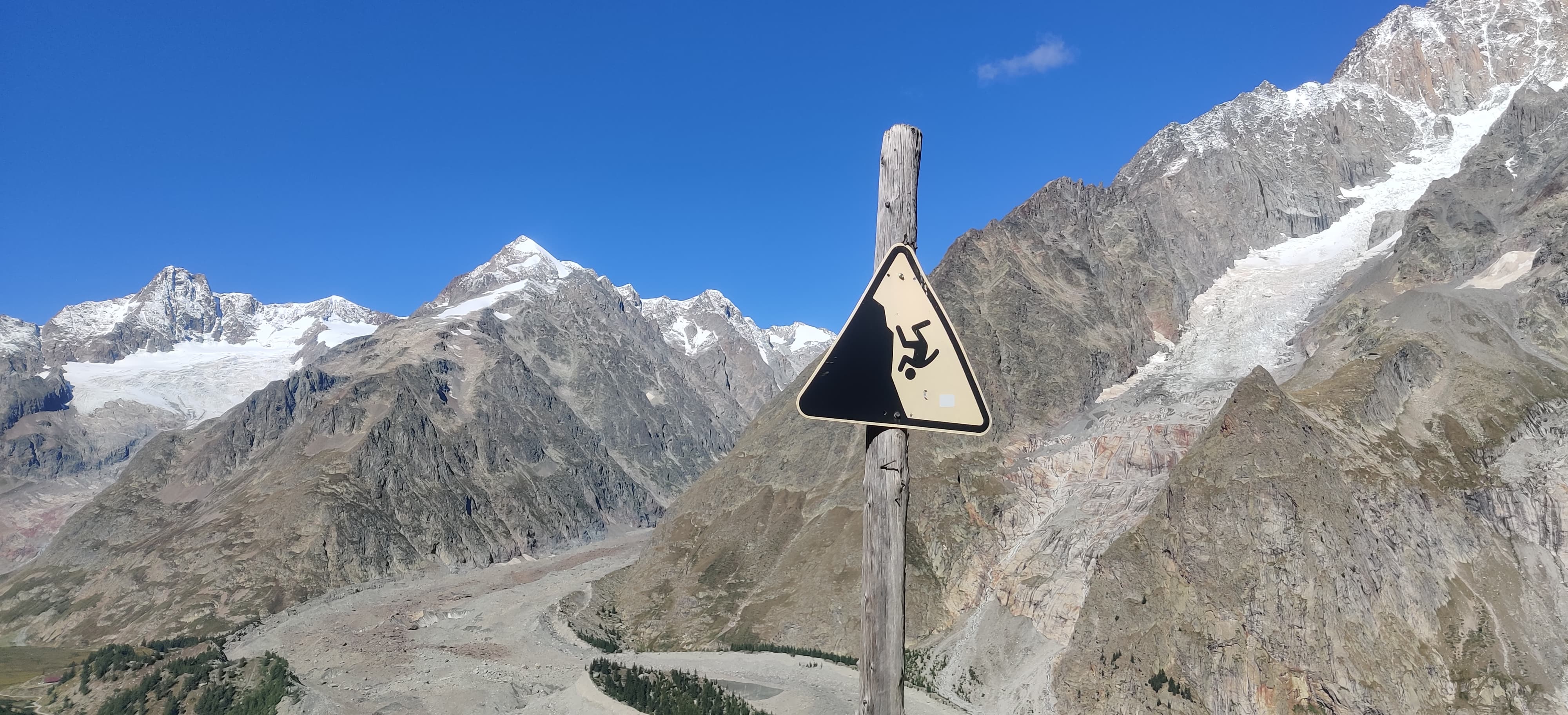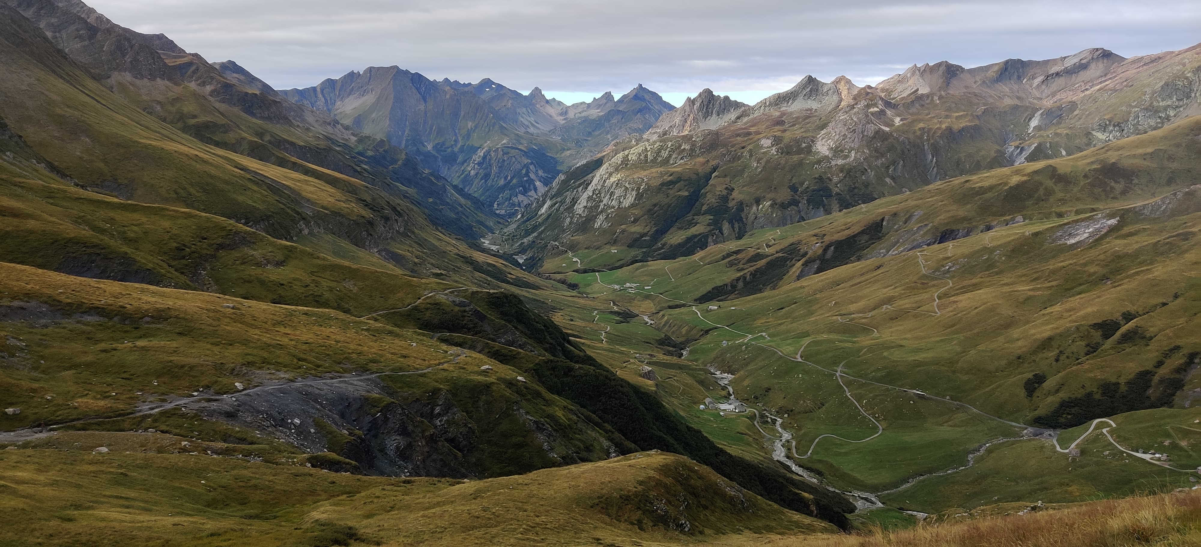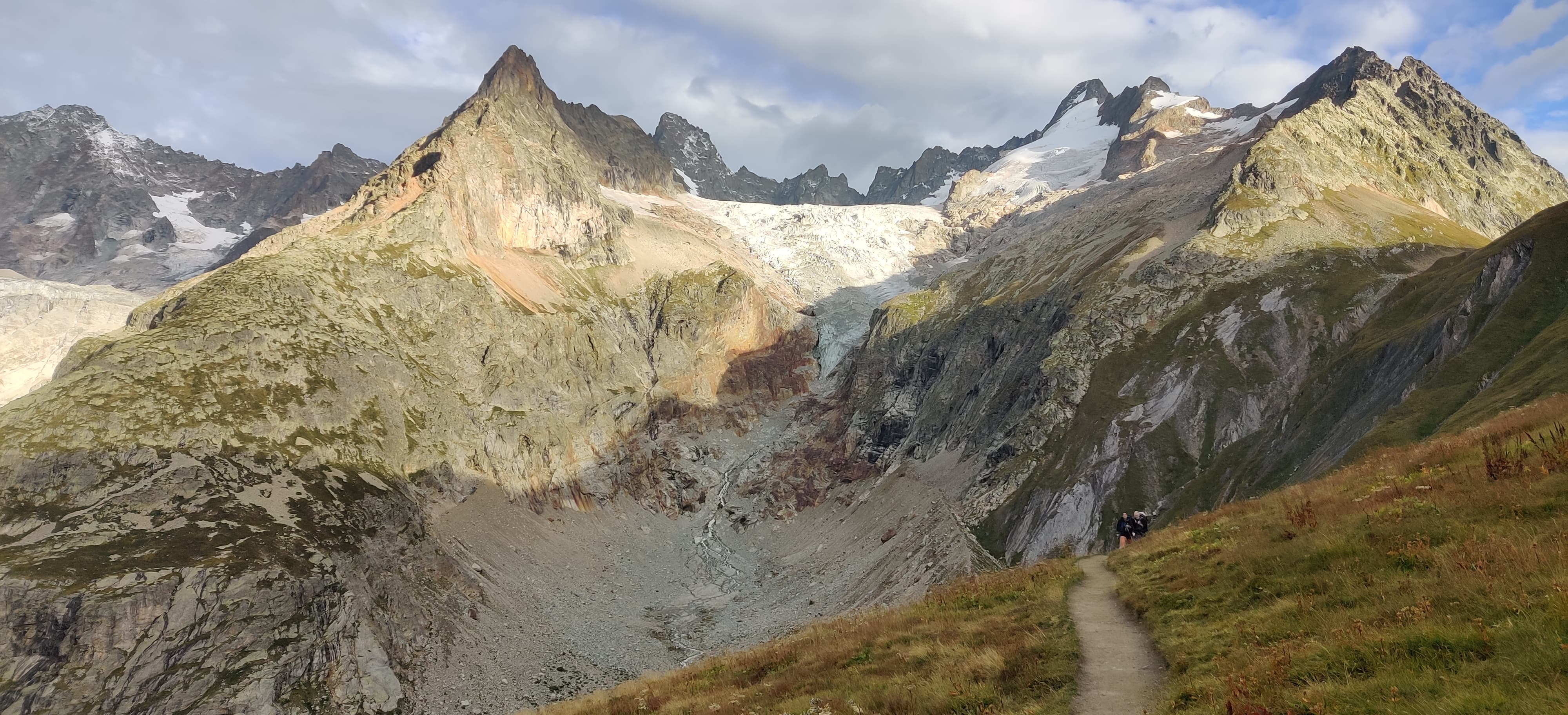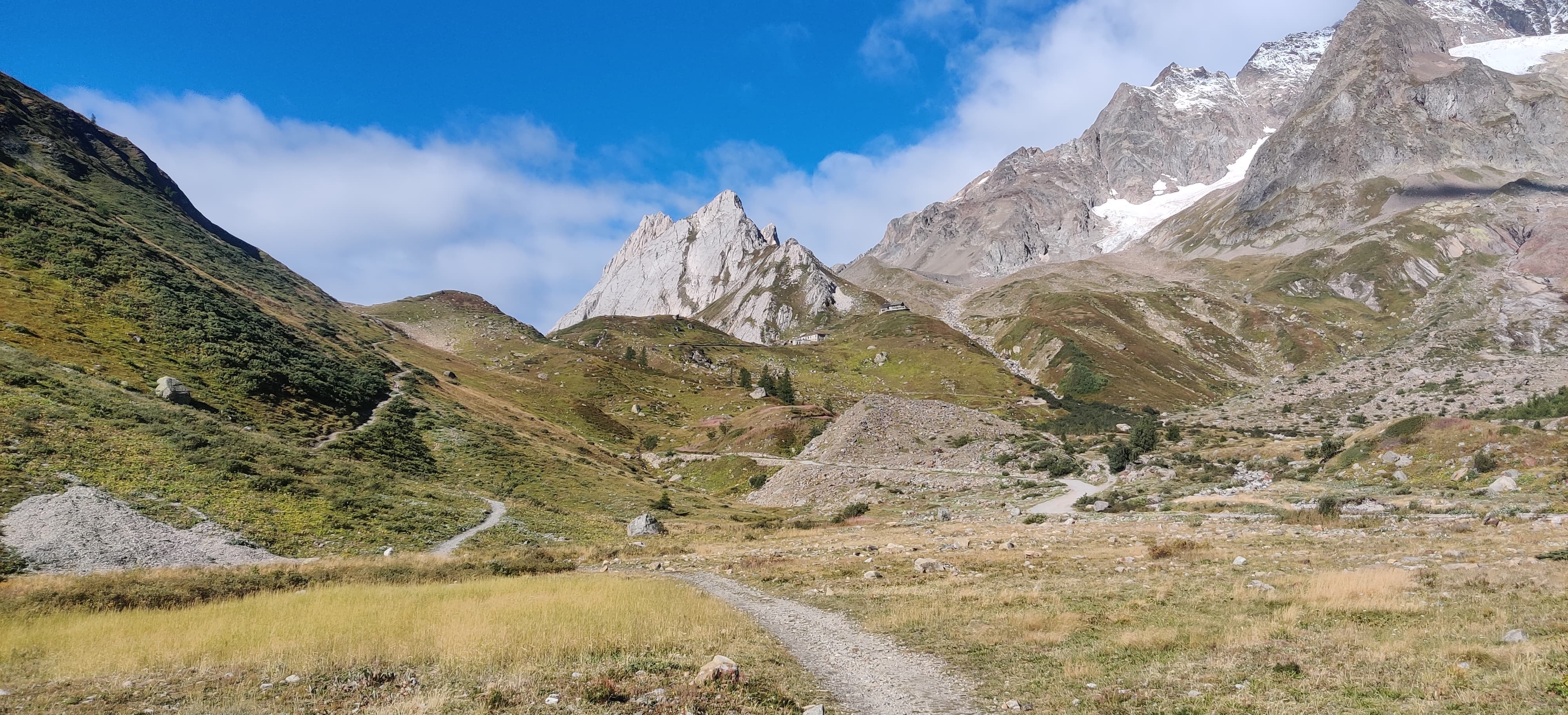 The night went well, and after packing up in the morning, I continued to the very bottom of the valley to a small settlement called La Ville des Glaciers, where I saw the first hikers of the day. I made a quick bathroom stop (a flushing toilet was a pleasant surprise out there) and then headed up toward Col de la Seigne. Along the way, I overtook what felt like a whole queue of TMB hikers, probably those who had camped somewhere near the valley where I had woken up.