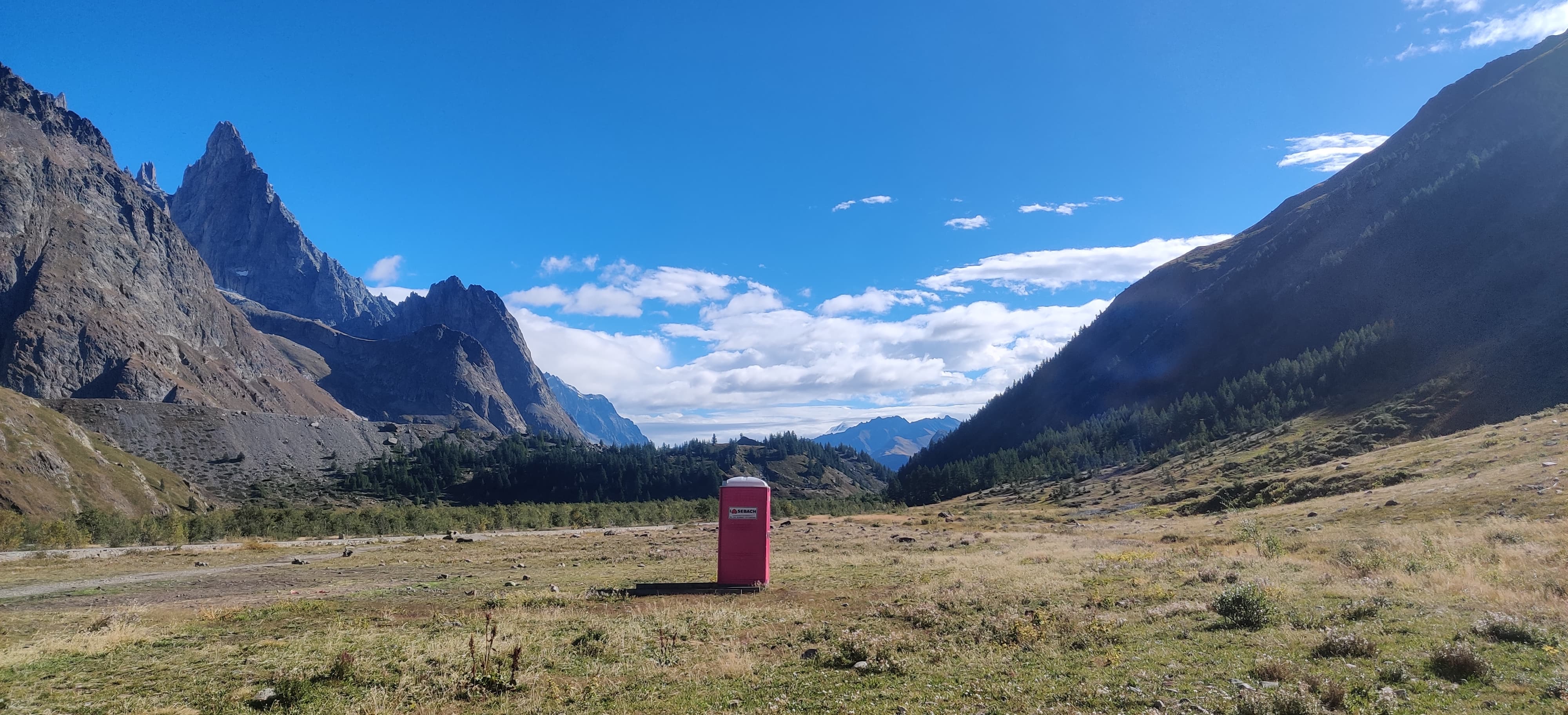 I descended into the valley where I spotted an epic toilet placed right in the middle of this beautiful alpine scenery. Honestly, I almost regretted that I didn’t need to use it at that moment — a throne like that deserved more appreciation.