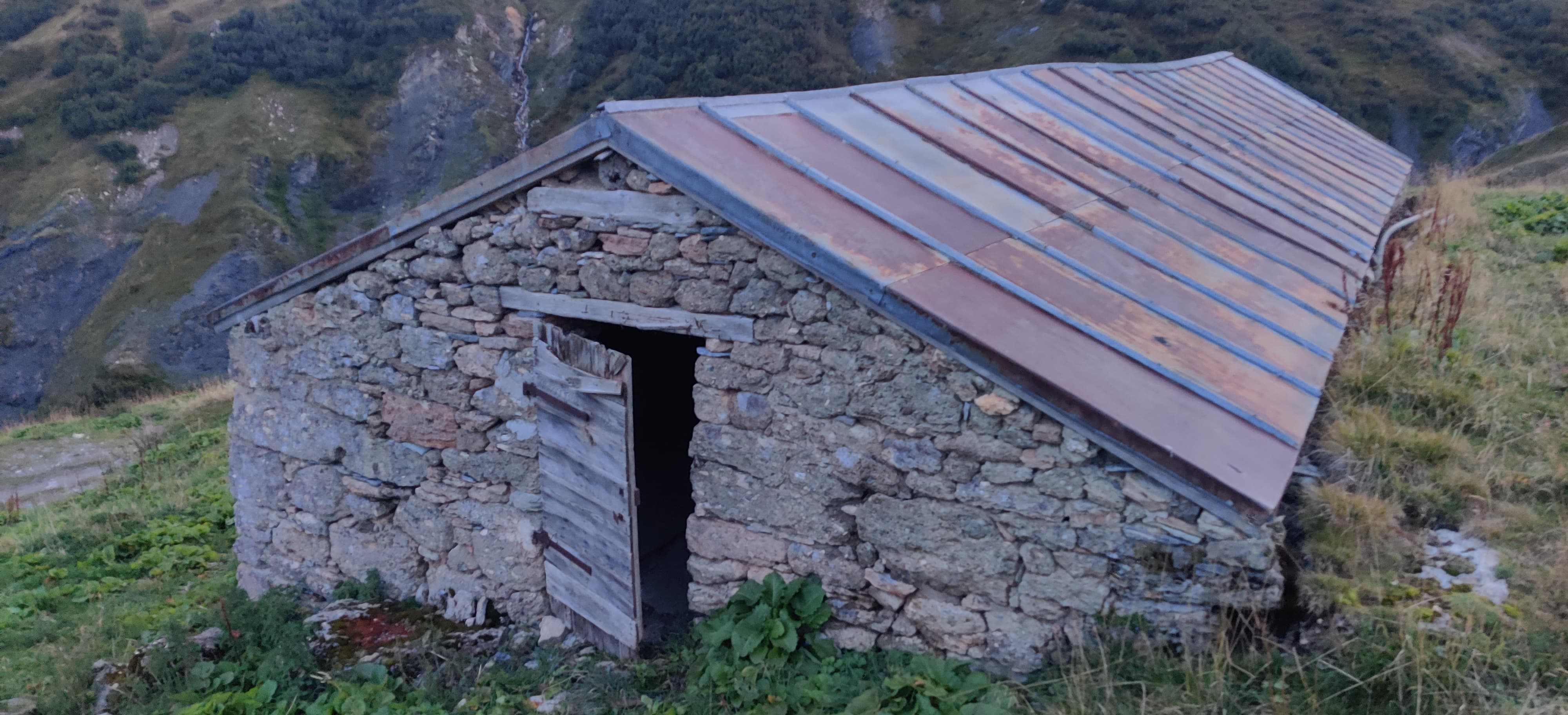 Soon I reached cow fields, and after a too-close encounter with three bulls in New Zealand, I wasn’t eager to risk a repeat. I made sure not to set up anywhere cows might wander at night. Almost at the bottom of the valley, where I saw a few other tents, I passed an old abandoned barn. I checked to see if anyone was around, then tried the door. It was stuck, a good sign it wasn’t in use. Inside, it was empty — and even better, no cow droppings. Jackpot. The place was practically begging me: “Stay here tonight!” So I did.