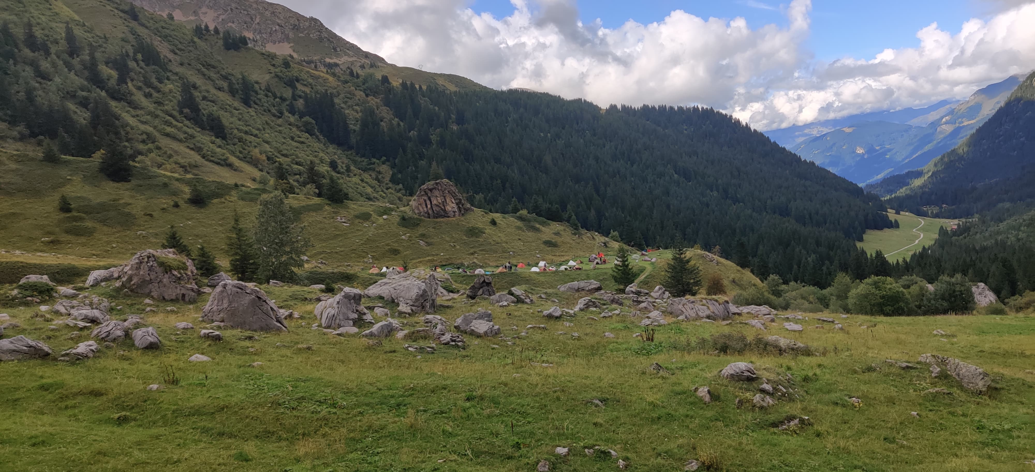 While waiting, I met a runner competing in the 400 km race of SwissPeaks. He was also stuck, waiting for the race to resume, so we had a really nice chat. By the time the storm moved on, it was about 10 p.m., and I went to pitch my tent at the small camping area next to the restaurant. I fell asleep to the sound of cowbells from a nearby herd, with the occasional flash of headlamps from runners competing in SwissPeaks making their way through the night.